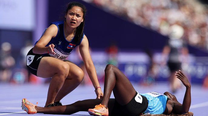 Art of sportsmanship personified as Laotian sprinter turns back to help opponent who collapsed during women’s 100 prelim