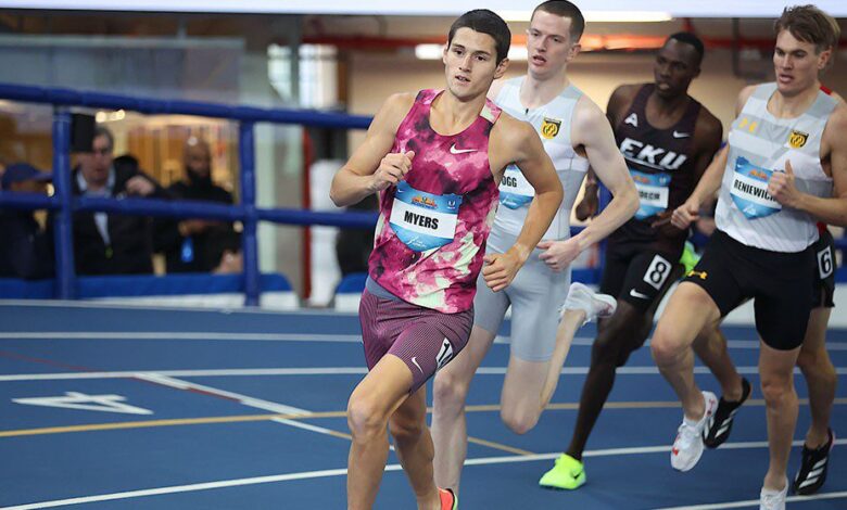 Cameron Myers runs world indoor under-20 mile record in New York