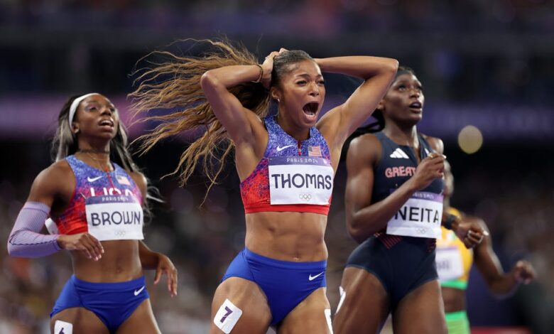 Gabby Thomas dominates Julien Alfred to win women’s 200m gold in Paris
