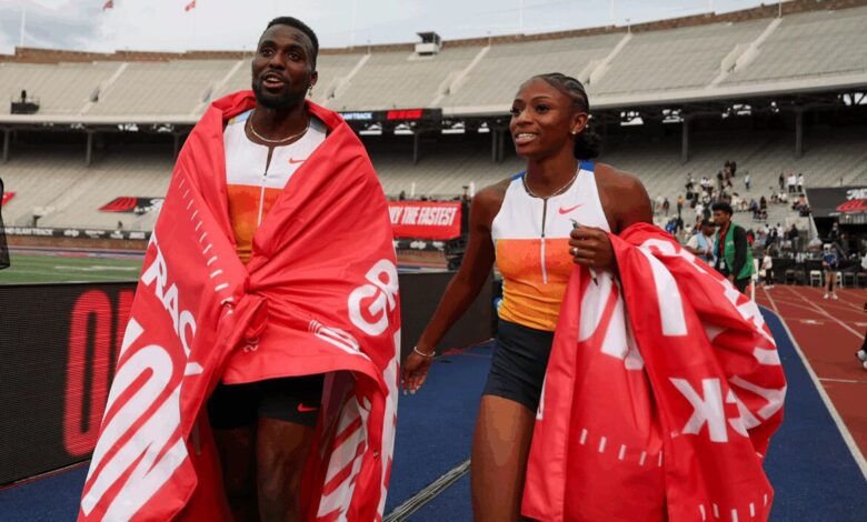 The final day of competition (June 1) at the third Grand Slam Track meet in Philadelphia concluded with explosive performances in the men and women’s 100m, held at Franklin Field at the University of Pennsylvania. Both Melissa Jefferson-Wooden and Kenny Bednarek delivered new personal bests and world leads in their events.
